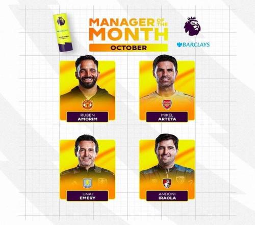 | 北京时间10月30日,官方消息,英超10月最佳主帅候选名单公布,分别是阿尔特塔、阿莫林、埃梅里和伊劳拉。