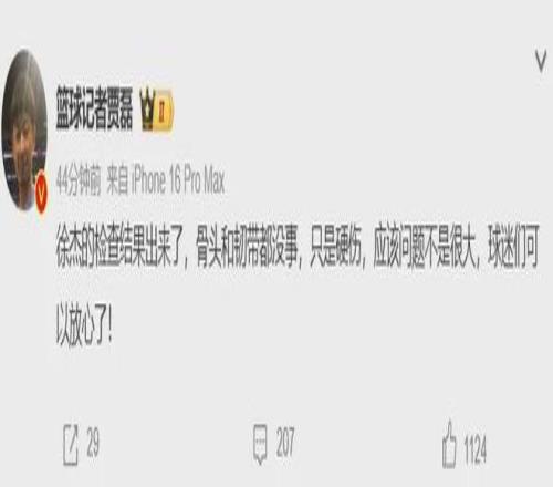 至于在此役次节被撞到膝盖,仅打约14分钟便伤退的徐杰,经过检查骨头和韧带都没事,所以没啥大碍,既然只是硬伤休养一段时间即可。